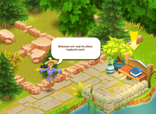 Das Reservatslogbuch liegt auf der Terrasse an dem Bach, der die Stadt vom Reservat trennt. Es enthält eine Übersicht über die Puzzleteile, die benötigt werden, um ein neues Reservatstier freizuschalten.