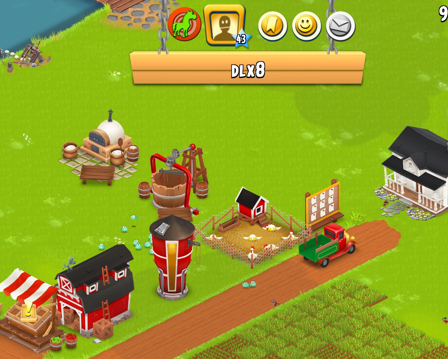Ich stoße auch immer öfter auf ganz....komische Farmen, wie hier, Level 43, nur 1 x Hühner, 1 Futtermühle und Bäckerei, sonst NICHTS.