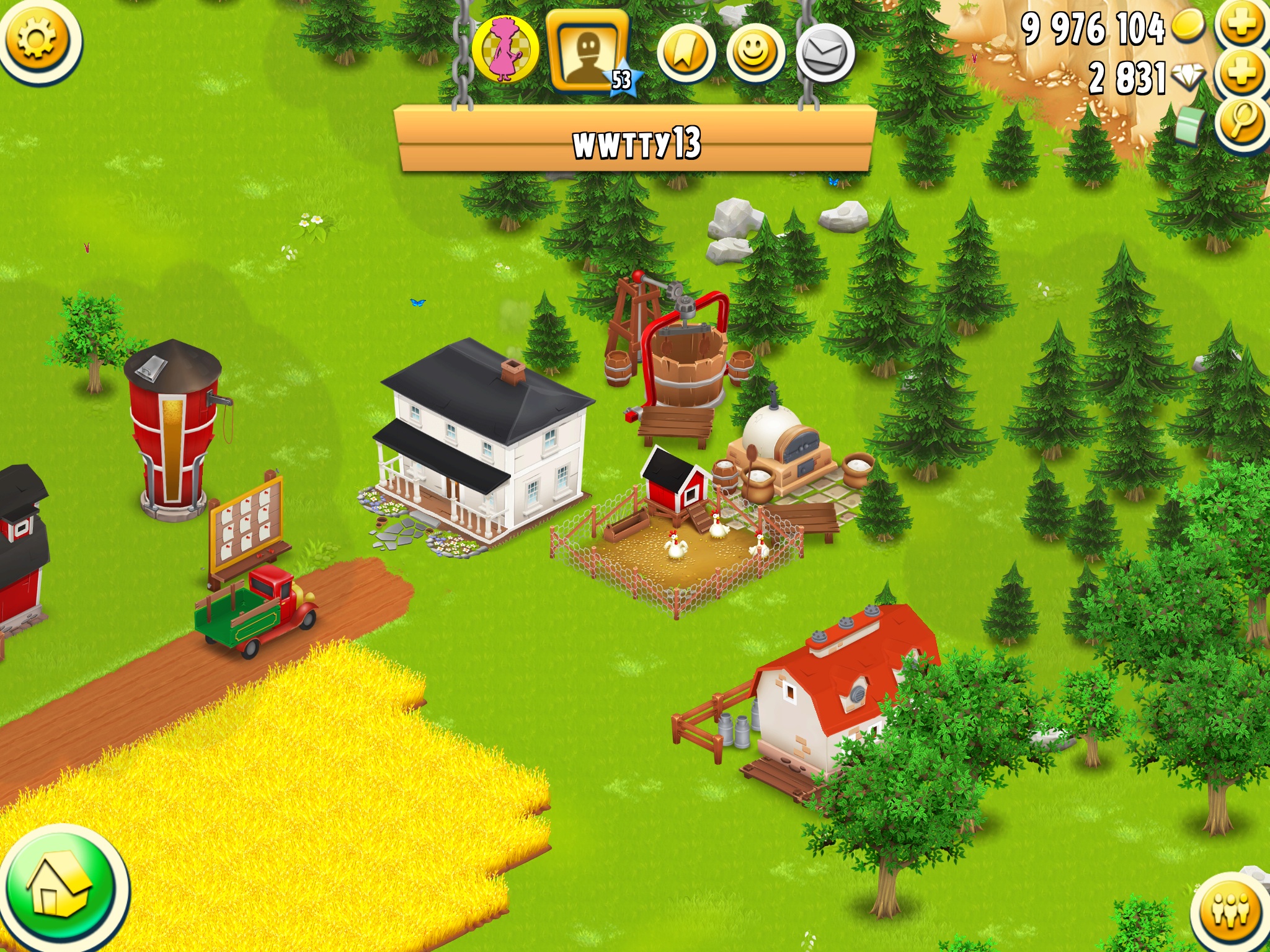 Und das Farmhaus sieht so klein aus, weil es eben nicht vom Level abhängt, sondern von der Anzahl der gemeisterten Erfolge... diese Farmen werden wahrscheinlich "Verkaufe in deinem Verkaufstand Waren für so und so viel Geld" und "Ernte so und so viele Felder in 20 Minuten" erfüllt haben, aber alle anderen eben nicht... und darum sehen sie so aus und werden immer so aussehen. -