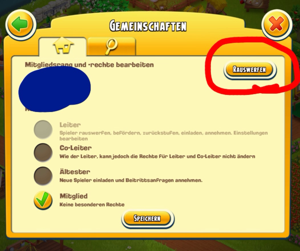Dazu muss die auf das Gemeinschaftshaus tippen und den betreffenden User in der Liste raussuchen. wenn sie den Namen antippt, erscheint "besuchen" und "bearbeiten" sie muss auf "bearbeiten" tippen.