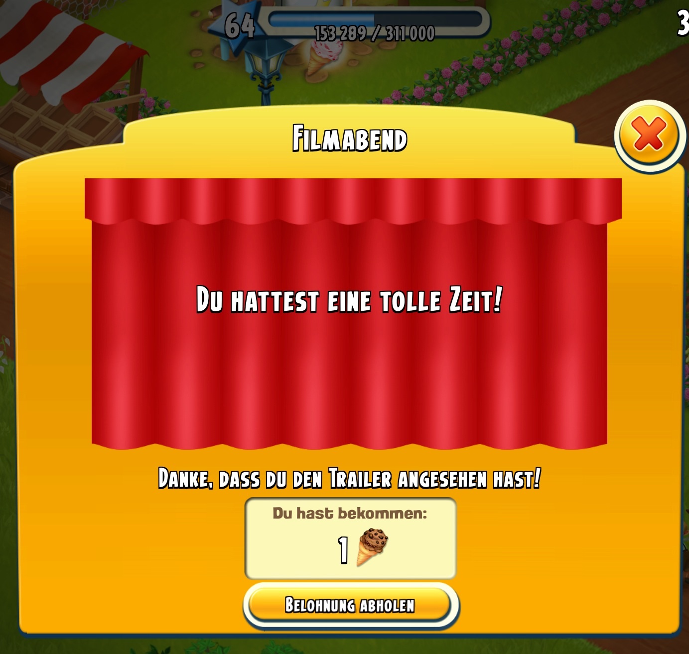 Noch mehr Belohnung bei den Kino Tickets Filmabend bei Hay Day