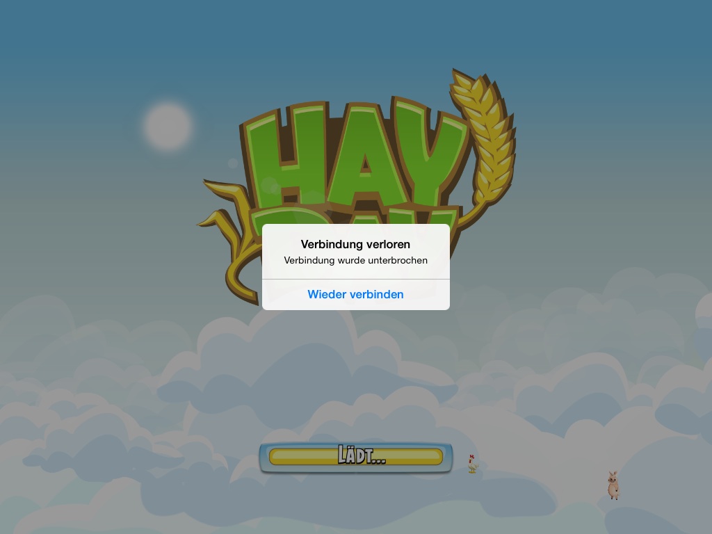 Seit ungefähr drei oder vier Stunden komme ich aber jetzt nicht mehr auf meine Farm, das Spiel lädt und lädt und dann steht da "Verbindung verloren" und "wieder verbinden". Klappt aber nicht.