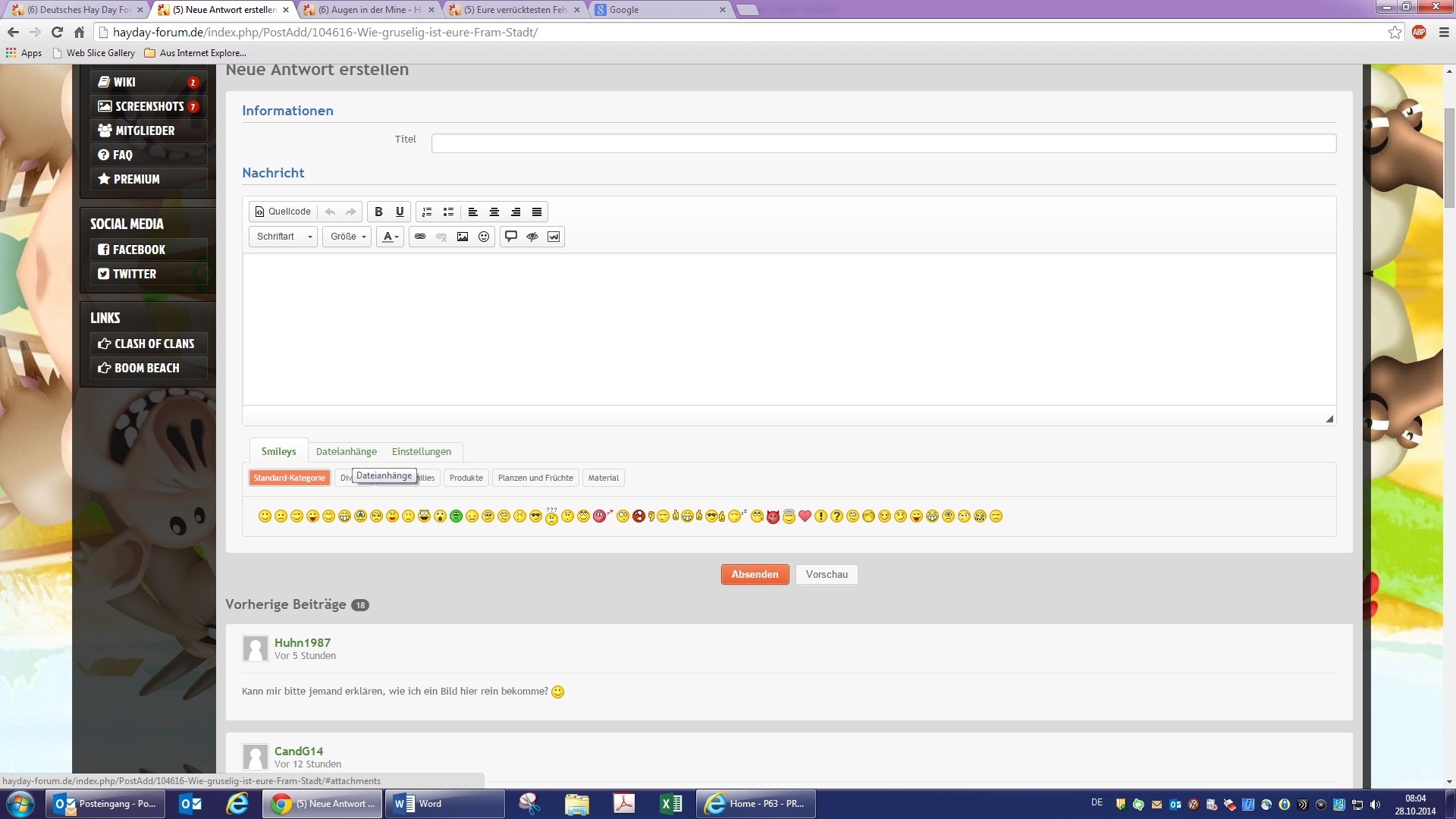 Um ein Bild in einen Forenbeitrag einzufügen, gehst du wie folgt vor: