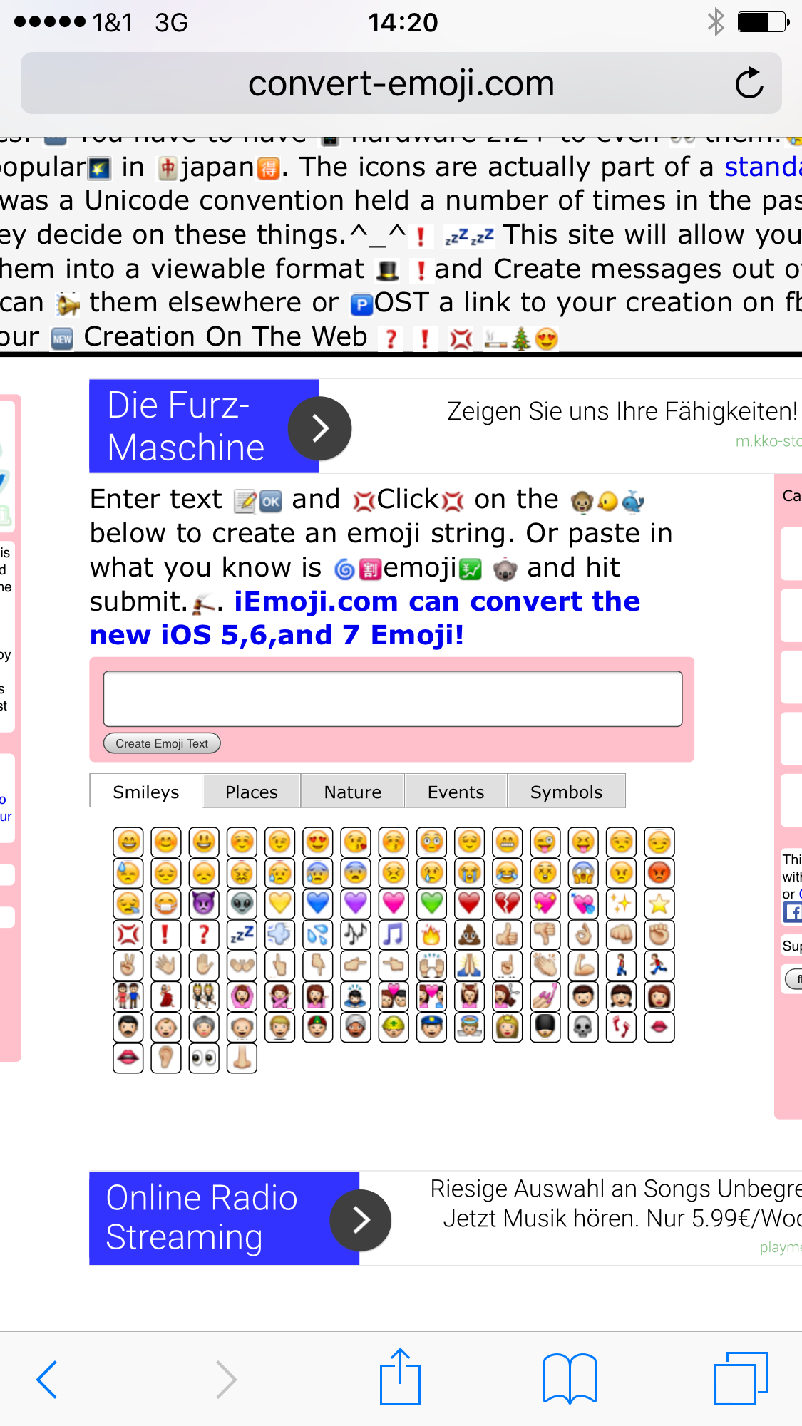 "Create emoji text" klicken und im folgenden Screen die Symbole aus der oberen Box kopieren (lange drücken)