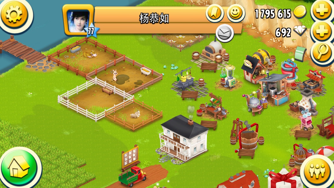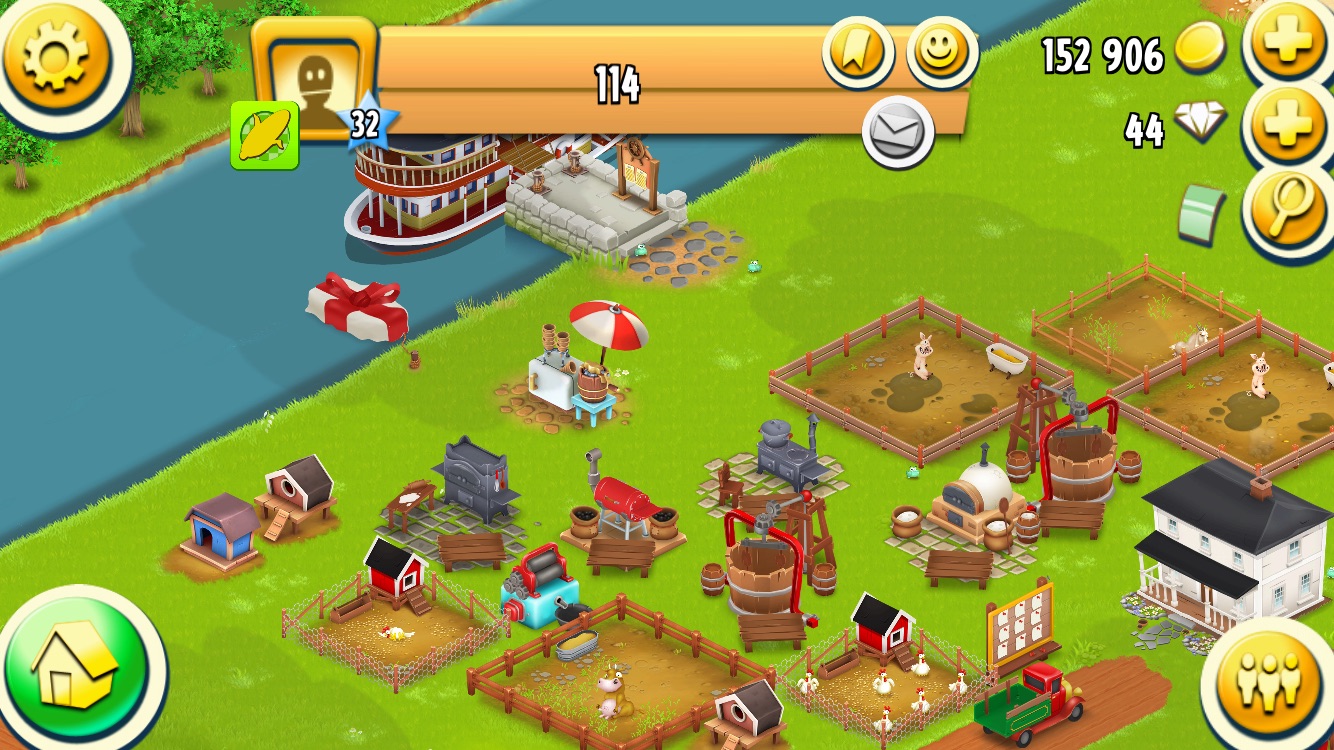 Alle Tiere auf einem Haufen, nur ne Bäckerei und Futtermühle. Die Farm ist Level 56 und heißt Rivor. Mine, Steg etc. als Geschenk eingepackt. Was für mich neu war ist aber, dass diese Bots auch Lieferwagenbestellungen machen. Und 45000 Münzen als höchste Einnahmen pro Tag nur mit Weizen ist ja auch krass -