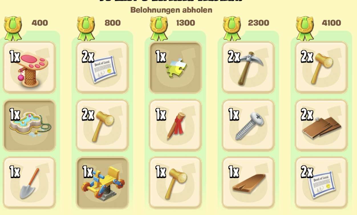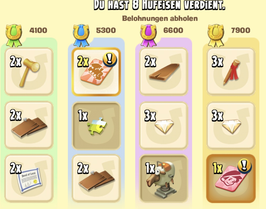 Zudem braucht das Zeugs auch Platz! Puzzleteile gab es 1 und im Glückrad heite 0 . Die Dias sind mir zu schade um mehrere Versuche zu wagen.Ich nehme es mittlerweile sehr gelassen, auch weil ich meine Scheune recht gut ausgebaut habe. Bekomme auch von den Stadtleuten nur was ich im Überfluss habe... dash