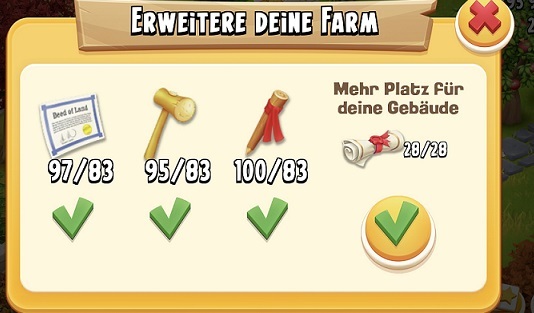 Scheune erweitert und zu guter Letzt: heute einmal Landerweiterung - aber nicht irgend eins nö dieses fiese Stück Land mit 83 vom jedem