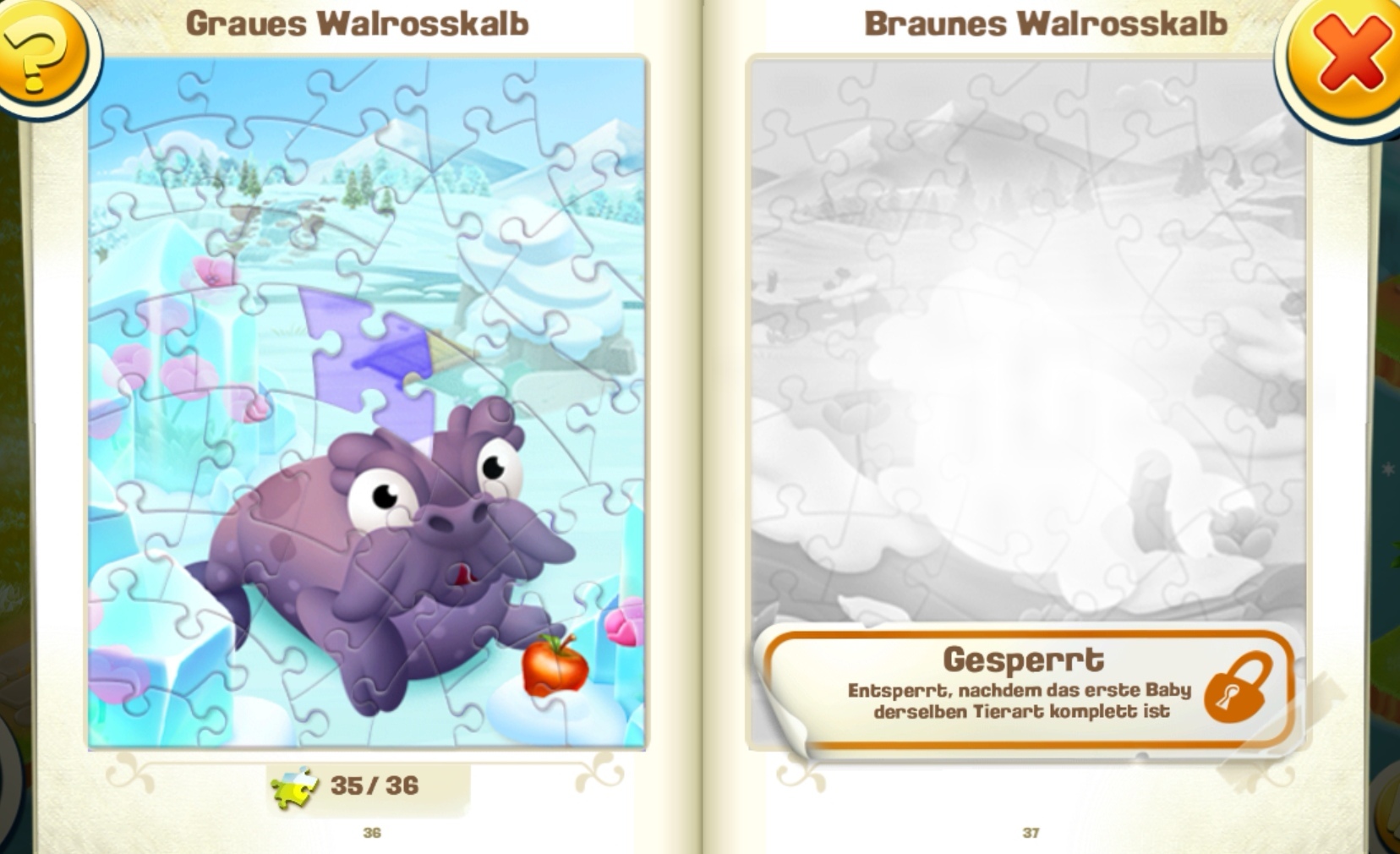 Nennen wir es mal VORFREUDE, dass danach entsprechend aktueller Situation nur noch 36 Puzzleteile für das letzte einzusammelnde Tierchen benötigt werden.