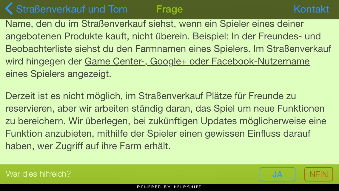 Blockierung: Es soll endlich möglich sein, Farmer zu blockieren. Es wäre nicht schlecht, wenn alle Käufer (z.B die letzten 10) auftauchen, auf das man sie blockieren, aber nicht besuchen kann.