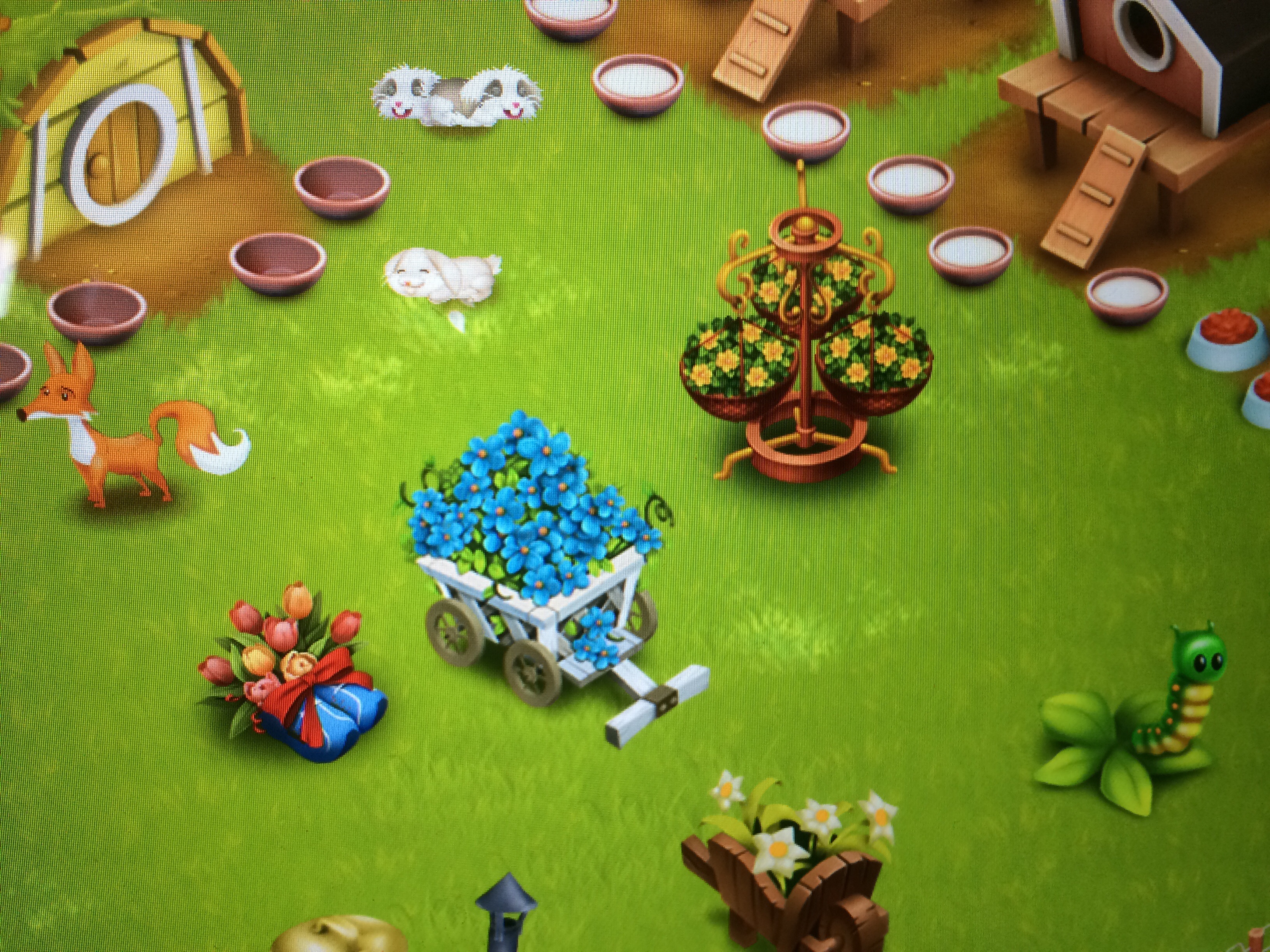 Der Bollerwagen und die hängenden Blumen von heute. -