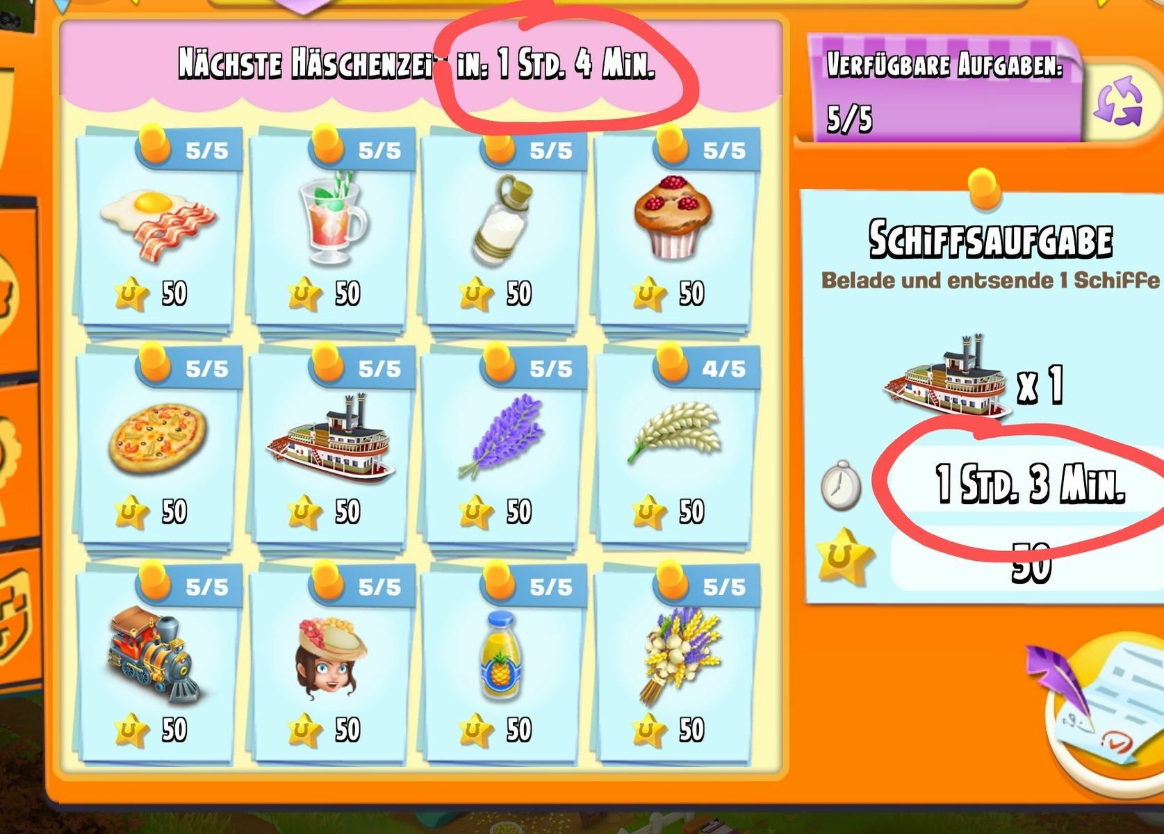 Gestern auf der kleinen Farm noch eine Tagesaufgabe vergessen, fiel mir heute um 9:55 noch ein. Gut habe ja noch ein paar Minuten, die Punkte können ja noch mitgenommen werden.