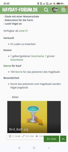 Nun Jedoch kann man das "Vogelbad" nur kaufen und nicht mit Bauplänen erweitern 🤔. Vielleicht meinst du auch da etwas anderes??