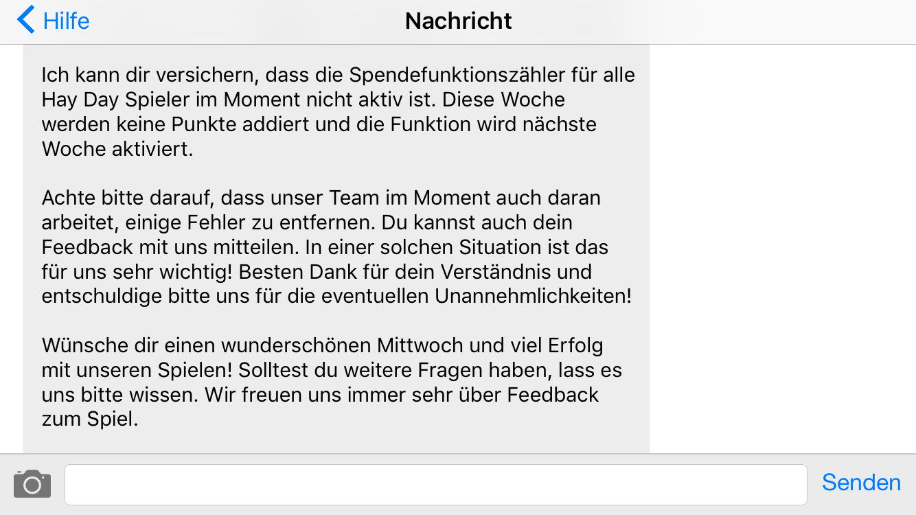 Es tut mir leid, dass du und deine Mitspieler diese Schwierigkeiten mit den Gemeinschaftsbitten habt. Planmäßig sollte die Statistik für die gespendeten Produkte, Pflanzen und Werkzeuge erst ab diese Woche ersichtlich sein. Bedauerlicherweise hat dies nicht für alle unserer Farmer reibungslos geklappt, daher haben unsere Kollegen gestern eine Wartung durchgeführt, die das Problem beheben soll. Falls du also nächste Woche, nachdem die Statistik aktualisiert wird, weiterhin Nullwerte in dieser Übersicht siehst, melde dich bitte unbedingt mit einem Screenshot bei uns zurück, damit wir uns die Sache näher ansehen können. Entschuldige bitte die entstandenen Unannehmlichkeiten.