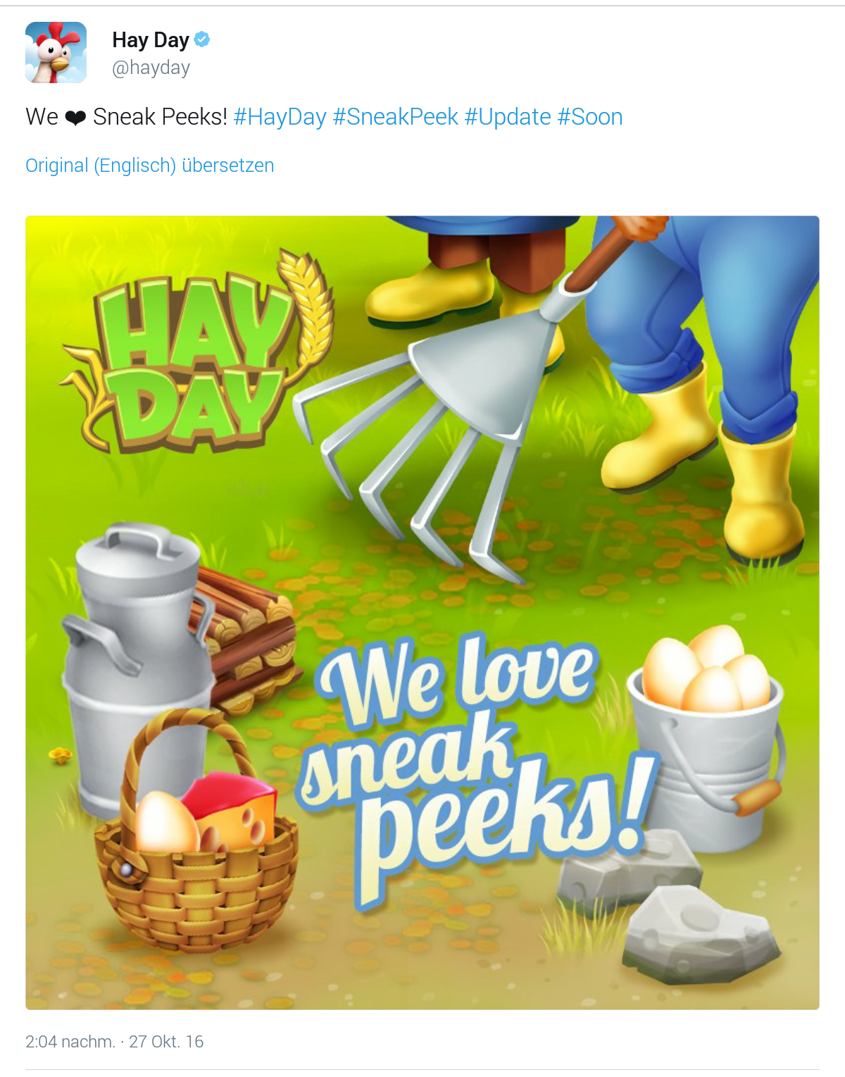 Also, was könnte denn jetzt Käse und Eier in Körbchen und Eimer und zwei gummibestiefelte Farmer mit Rechen bedeuten?