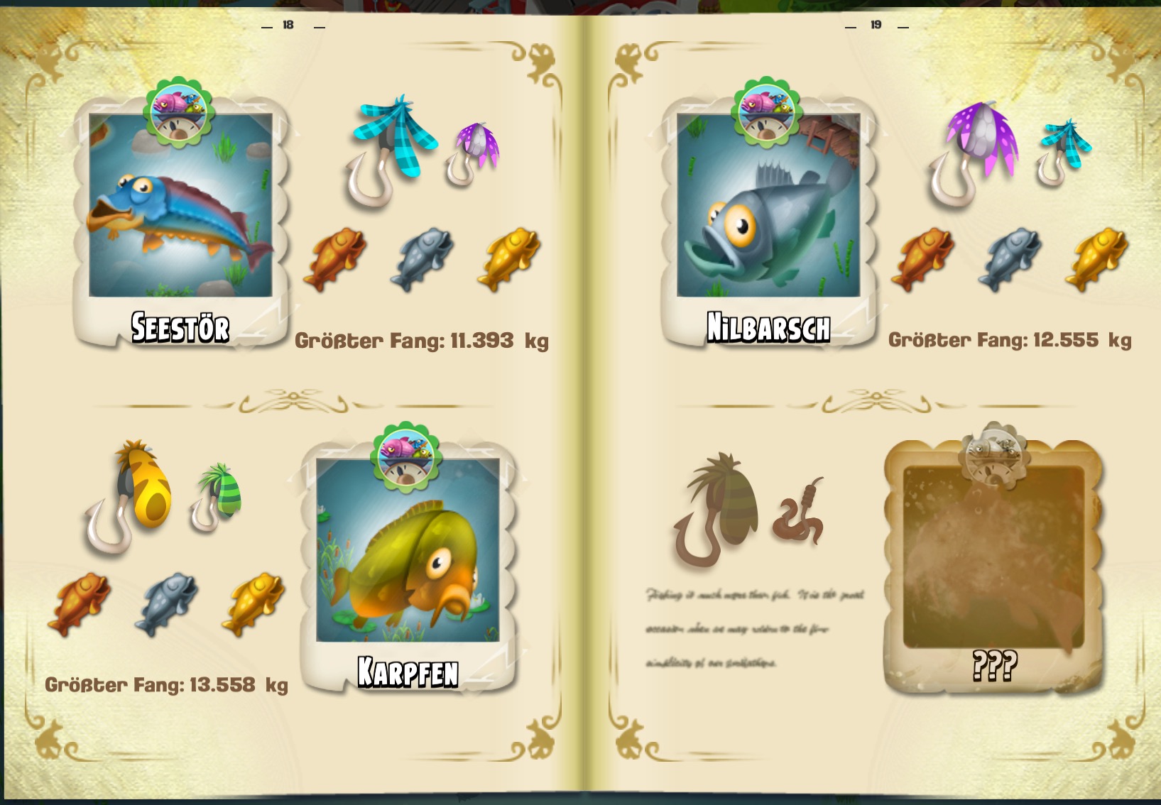 Danke @Feed with Candy, werde für morgen einen goldenen Köder produzieren und testen. Mir fehlt nur noch 1 Fisch, dann ist es ja ein Kinderspiel, wenn ich nur einen einzigen goldenen Gutschein dafür verbrauchen muss. :) Und wenn im Flugmodus dann der richtige Fisch angebissen hat, gehe ich aus dem Spiel raus, mache den Flugmodus aus, gehe ins Spiel und angele wieder an der selben Stelle? Oder muss ich da noch den Zwischenspeicher leeren?