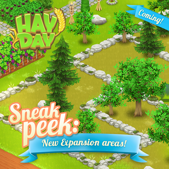 Die Landerweiterung ist ab Level 29 verfügbar.Es ist zu vermuten, dass die Landerweiterung im unteren Farmbereich weitergeht. Das ist am Weg zu erkennen, der über der Landerweiterung verläuft, und an den Bäumen im unteren Bildrand.