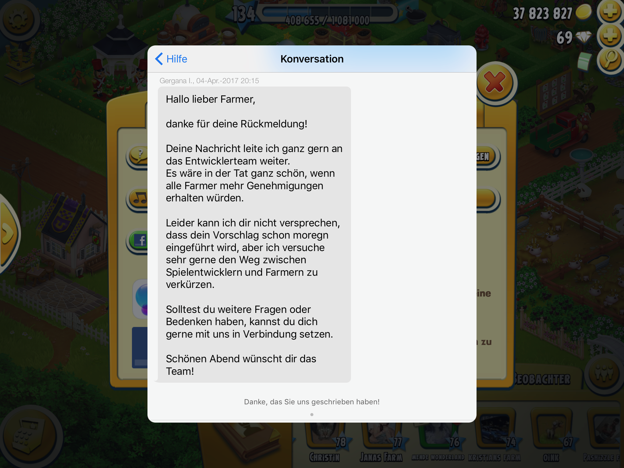 Anfrage an HayDay Support wegen Landerweiterungsgenehmigungen