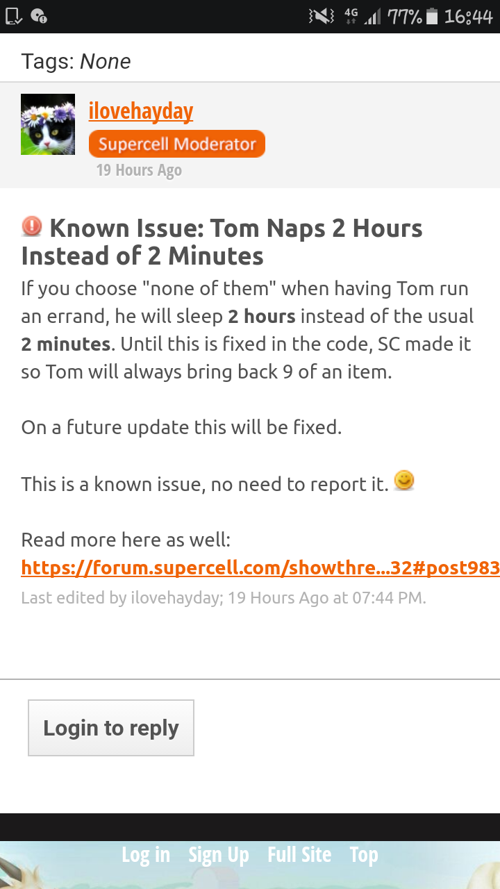 Wenn Du Tom angeheuert hast und nichts auswählst, wird er sich 2 Stunden schlafen legen anstatt der üblichen 2 Minuten. Bis dieser Fehler im Code behoben ist, hat SC eingestellt, dass Tom immer 9 Stück eines jeweiligen Produktes bringen wird.