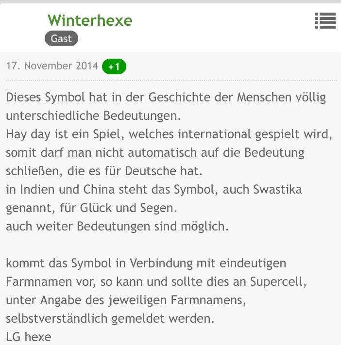 Hallo, mit großem Schreck und Wut habe ich eine Farm gesehen, auf der ein großes Hakenkreuz aus Hecken gemacht wurde!!