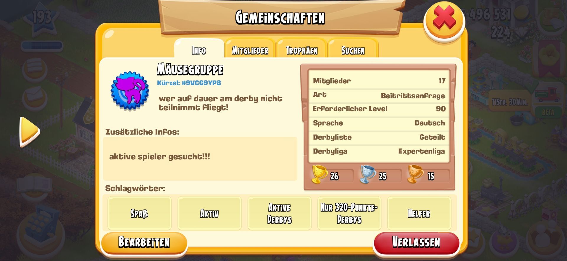 Die Gemeinschaft heißt übrigens rote rosen und hat ein kirsch symbol, und wie gesagt nur ich bin drin (Bio-farm) ![]()