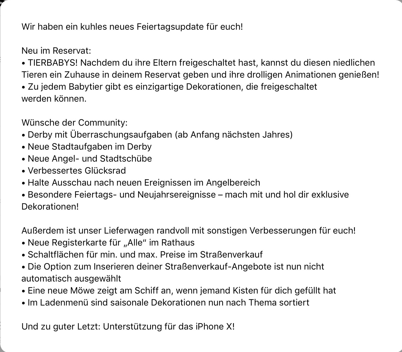 Jetzt heißt es warten!! :pfeife1: Aber dann ist das Update drauf, meine gelesen zu haben, dass es dann beim Stand eine Minimum/ Maximum Auswahl für den Verkaufspreis gibt:-) und vieles mehr...
