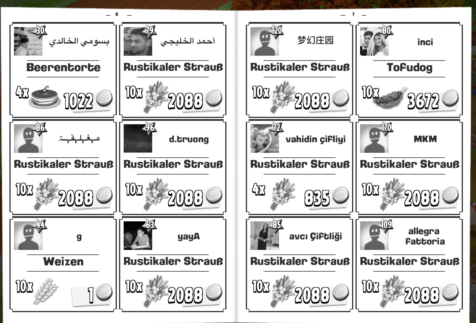 Ich finde die Sträuße auch sehr lästig, und schau mir die Angebote in der Zeitung nicht mehr an. Ich bekomme sogar ein schlechtes Gewissen wenn ich die mal reinstelle, aber bei mir wollen nicht mal die Bettler Sträuße haben. Ob das am Level liegt?