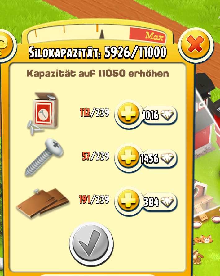Ich habe mein Silo gerade eben erst auf 800 gebracht.