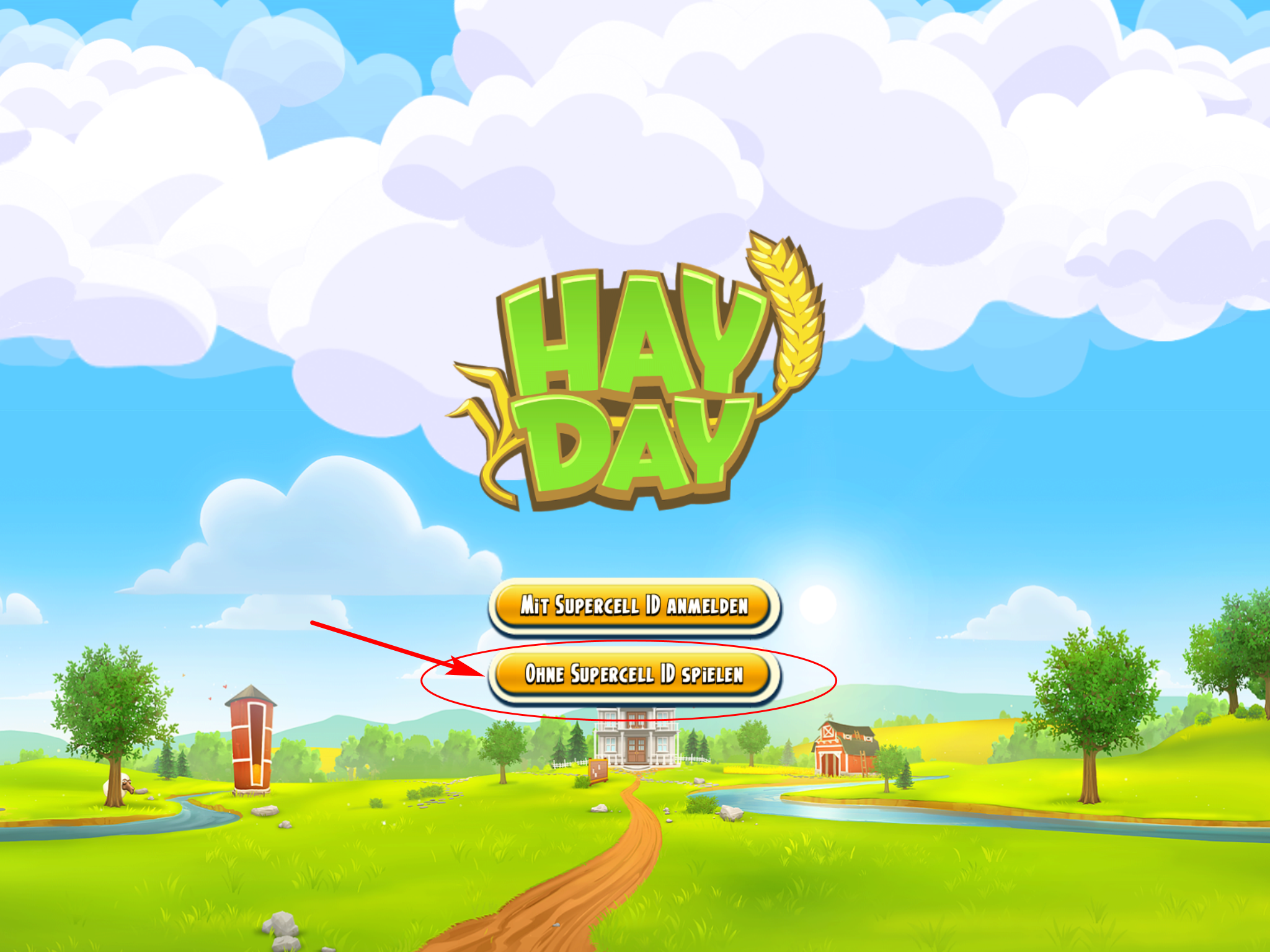 An diese Stelle beginnt das Spiel mit einer neuen Farm, die du dann über eine zweite ID (eMail-Adresse) sichern musst.