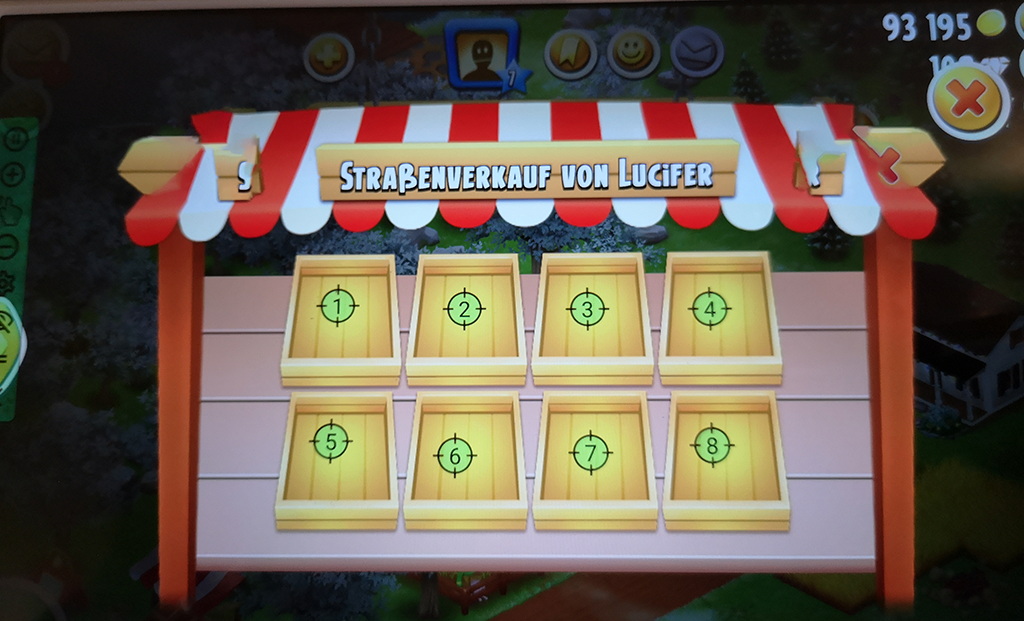 erstmal sorry das ich hier anonym unterwegs bin. Selbstverständlich möchte ich nicht meine echte Farm in Gefahr bringen.Ich habe den Spieß mal umgedreht. Ich hatte ausversehen über mein Tablet (der Finger ist ja immer zu flink wenn irgendwo Tools auftauchen) bei Lucifer geshoppt.