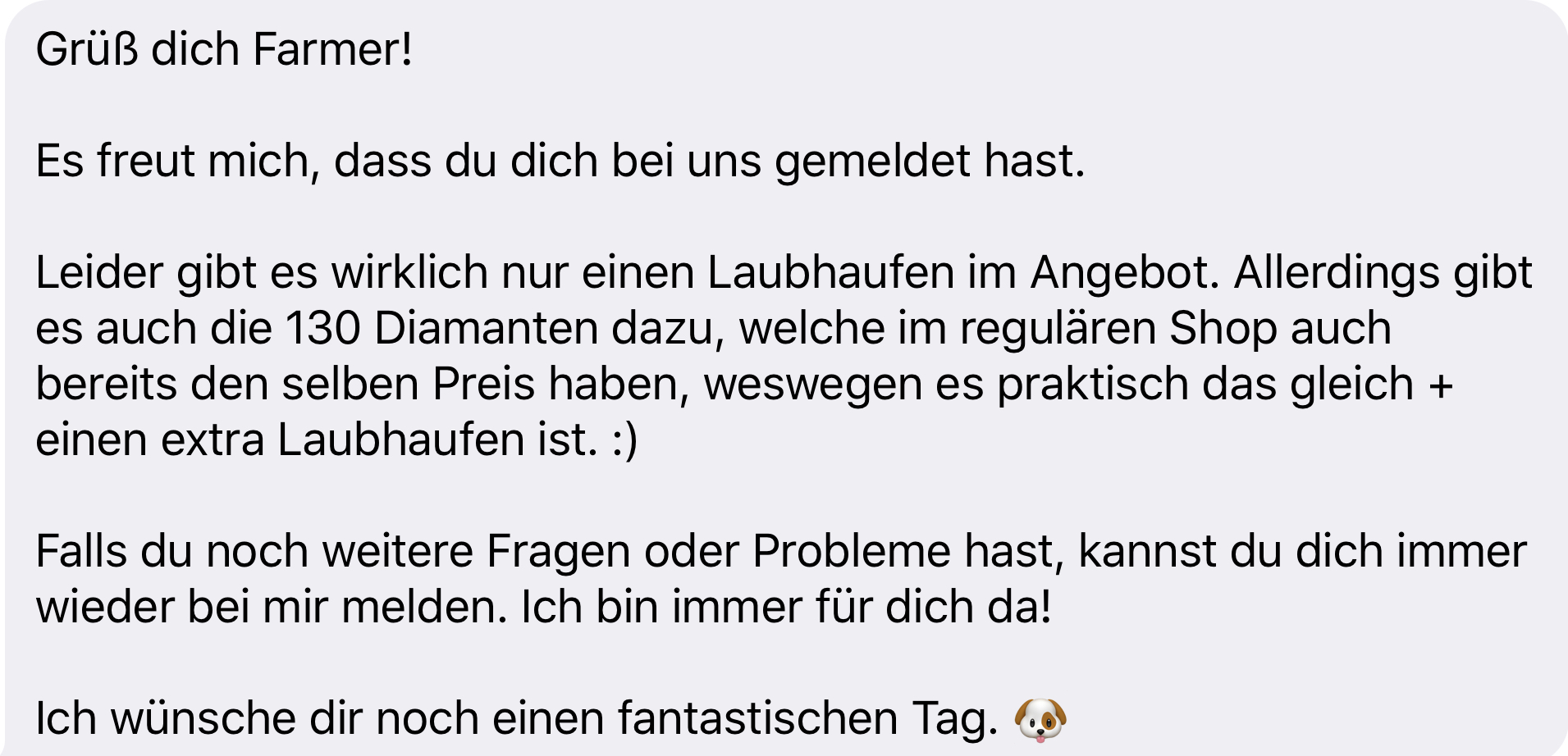 Ich finde im Shop macht SC für das Spiel Hay Day sehr wenig , wenn man die anderen Spiele von SC betrachtet .