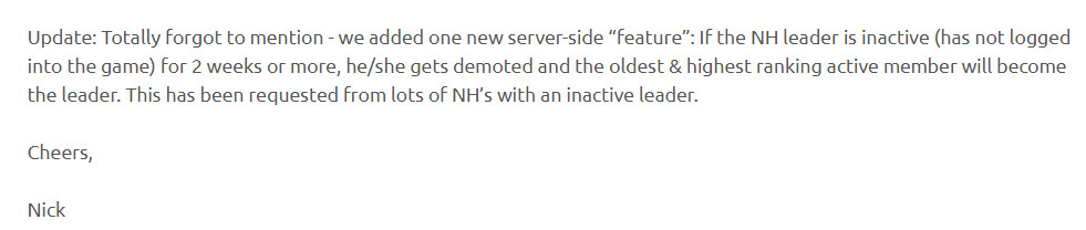 Zu gut deutsch. Alle nichtaktiven Leiter (länger als 2 Wochen nicht im Spiel angemeldet) werden vom System herabgestuft und der nächst höhere Spieler wird zum Leiter ernannt.