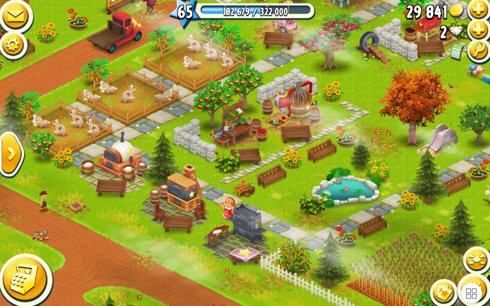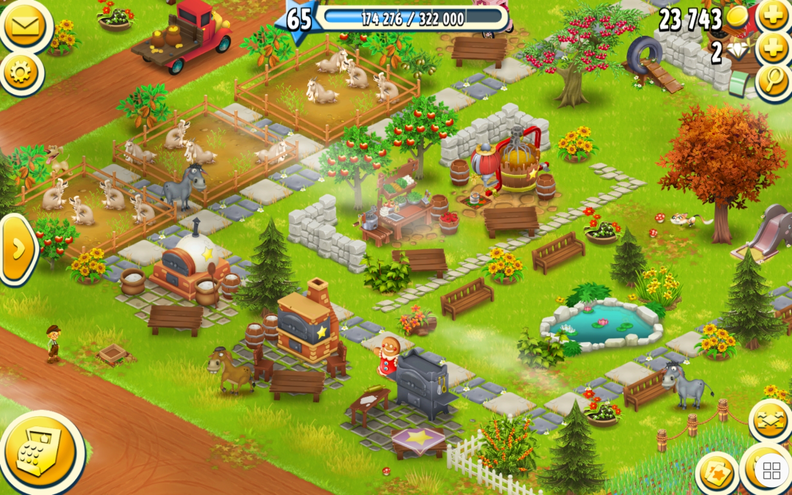 Oberhalb seht Ihr den Teich, und am Rand Bäckerei, Kuchenofen und Tortenofen. Und weiter drüber die Ziegenställe, von denen ich sprach.