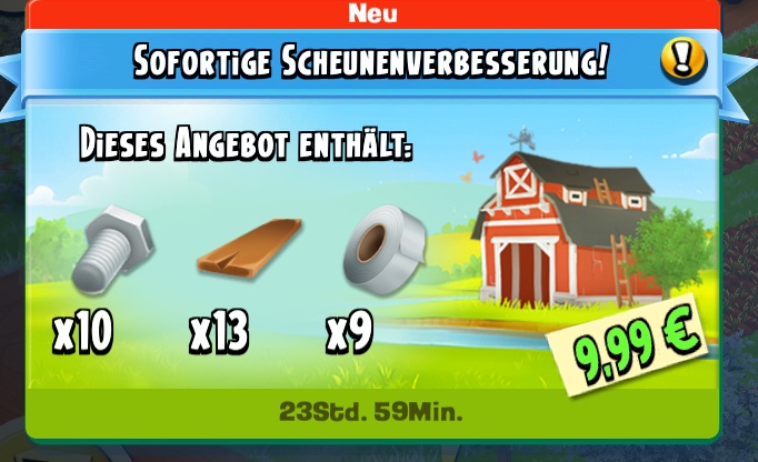 Die Lage ist so: für den nächsten Ausbau fehlen mir nur noch genau diese 111 Tesa, das andere habe ich. SC denkt offensichtlich von mir es wäre mir schlappe 30 Euro wert die Scheune um 50 Platz größer zu machen, so krank werde ich niemals sein, sorry.