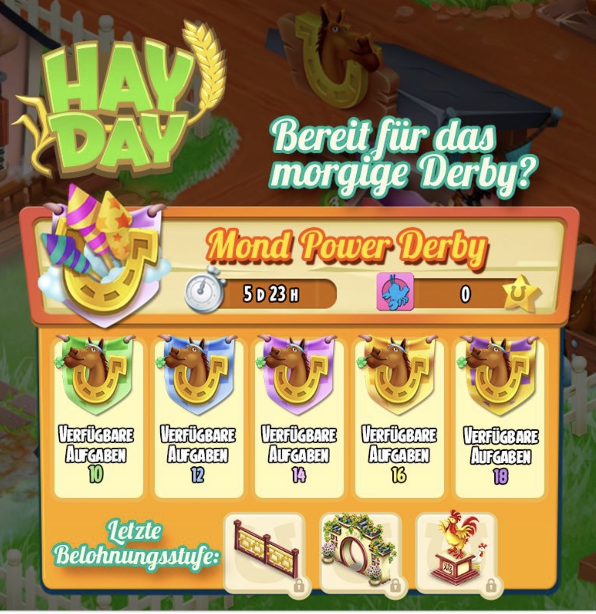#20 Auch ich war heute Mittag schon mit dem Derby durch und hab keine Deko beim letzten Hufeisen drin. War natürlich mega enttäuscht und hab auch an den Support geschrieben. Und eben sehe ich, dass eine Wartung war und es 5 Dias gab. Also mal im Forum geschaut, ob noch mehr Spieler Probleme gemeldet haben und welche.....