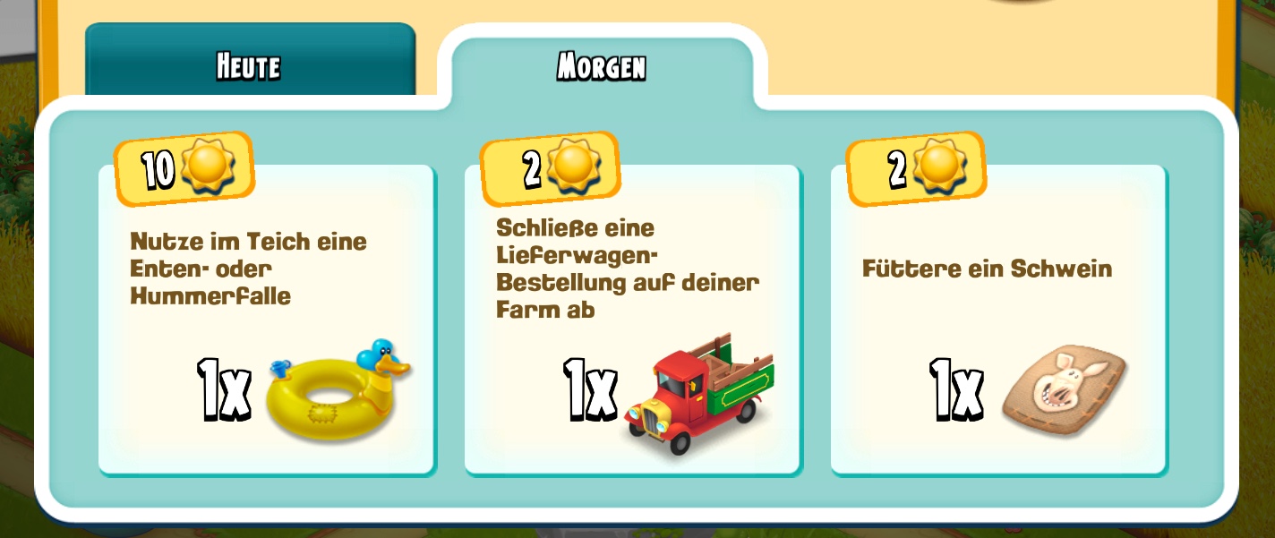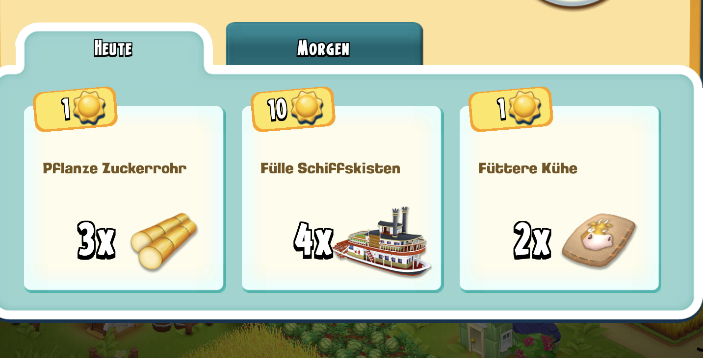 Nun warte ich erstmal wieder, dass meine lieben Kühe Milch geben. 4 Schiffkisten für grad mal 10 Sonnen werd ich mir noch überlegen. Mich störts im Moment noch nicht so sehr, dass zwischen den Aktionen manchmal länger Pause ist. Das hat man ja im Angelbereich und in der Stadt auch, wenn alle Angelstellen abgearbeitet und alle Besucher bedient sind.