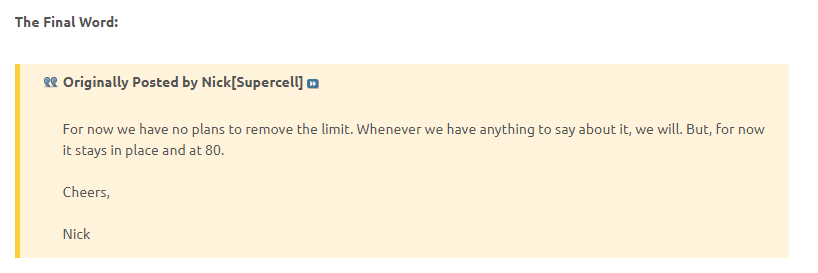 SC hat bereits deutlich zu verstehen gegeben, das dieses Limit nicht aufgehoben wird. Wie auch bereits schon öfters hier geschrieben wurde, will SC damit verhindern, das Lucifer weiter sein Unwesen treibt.