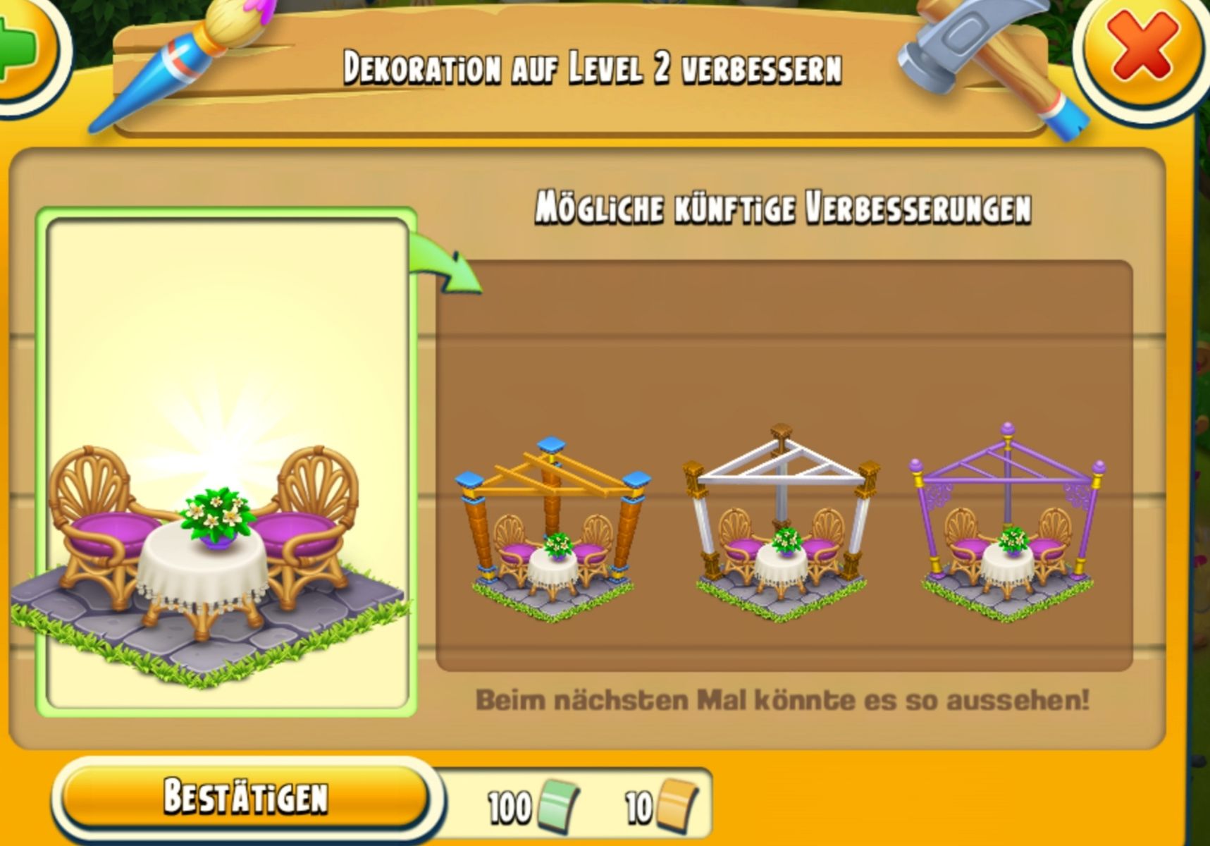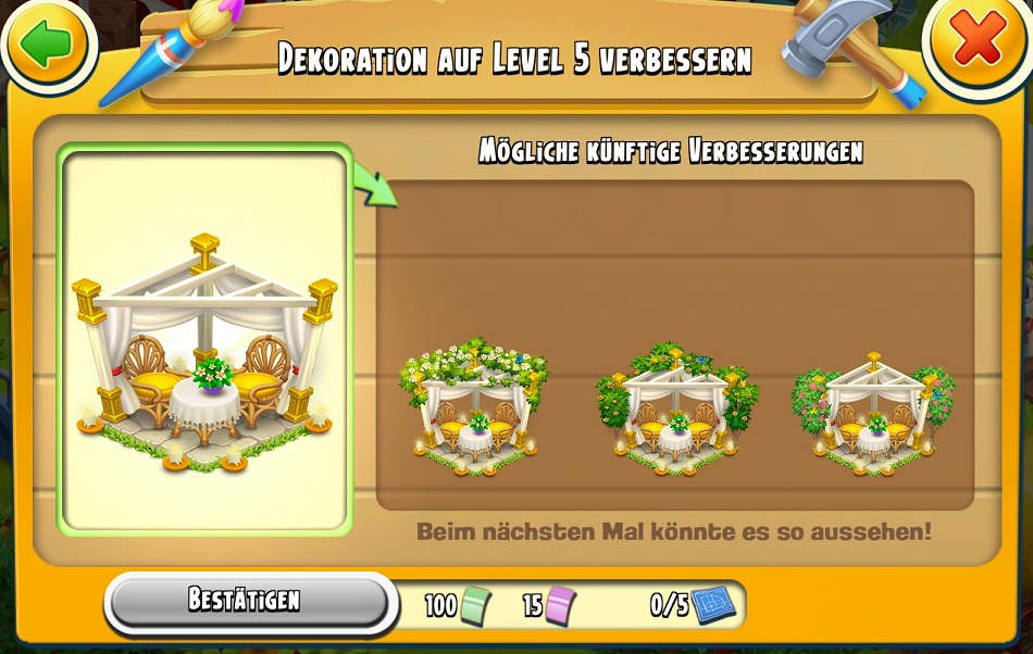 Ich habe bereits angefangen mit der Erweiterung und mir gefällt sie jetzt schon sehr gut, obwohl sie nicht fertig ist. Mir fehlen die grünen Gutscheine für weitere Erweiterungen.