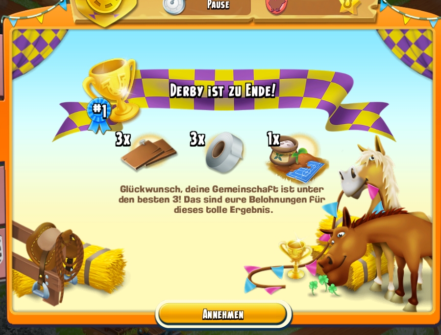 #52 Nein daran kann es nicht liegen. Ich habe meine erste anpassbare Deko gleich ausgebaut und habe bis jetzt keine neue anpassbare Deko mehr bekommen. Obwohl wir auch schon den einen oder anderen 1, 2, und 3. Platz gemacht haben. Mittlerweile habe ich mich auch damit abgefunden. Vielleicht kommt ja auch bei mir irgendwann der Hayday Glücksmoment und ich kann meine 17 blaue Baupläne einsetzen. Die Hoffnung stirbt zuletzt.