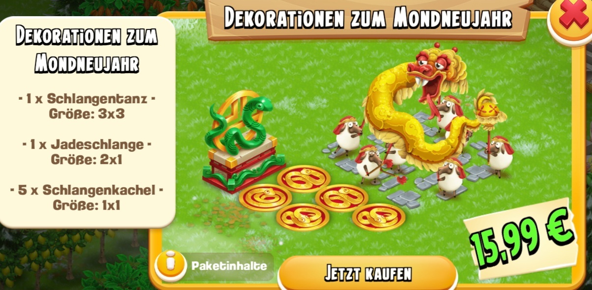 Eines sollte man sich klar machen, es wird immer neue Deko geben, solange es HayDay gibt. Und wohin mit dem Zeug? Alles aufstellen kann man nicht. Von daher....man verpasst nichts, wenn man widersteht. Klar, wenn man etwas gerne haben möchte, soll man zuschlagen und Freude daran haben. Aber bitte fein dosiert, nicht hinter jeder Sau hinterherjagen, die durch's Dorf getrieben wird. Im RL kann man auch nicht alles haben was man möchte.