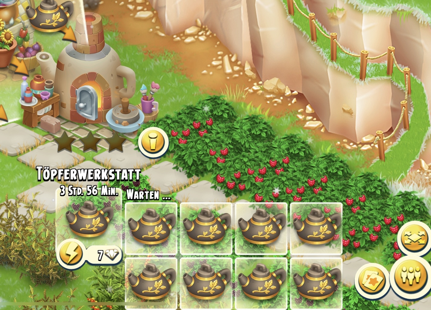 Die Diamantenverschwendung für die ganzen produktionsplätze spare ich mir. Jedes Teil das man dort bisher herstellen kann benötigt über 3 Stunden. Da reichen mir 4-5 Plätze locker aus.