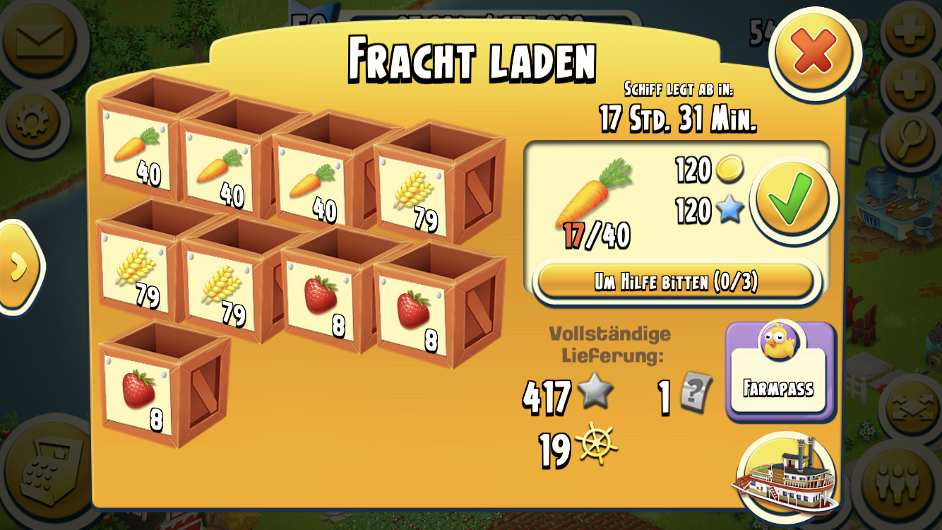In der Wiki-Datensammlung gibt es eine Tabelle von Uwegan - da kannst du rauslesen, wieviele von den Feldfrüchten pro Kiste benötigt werden.