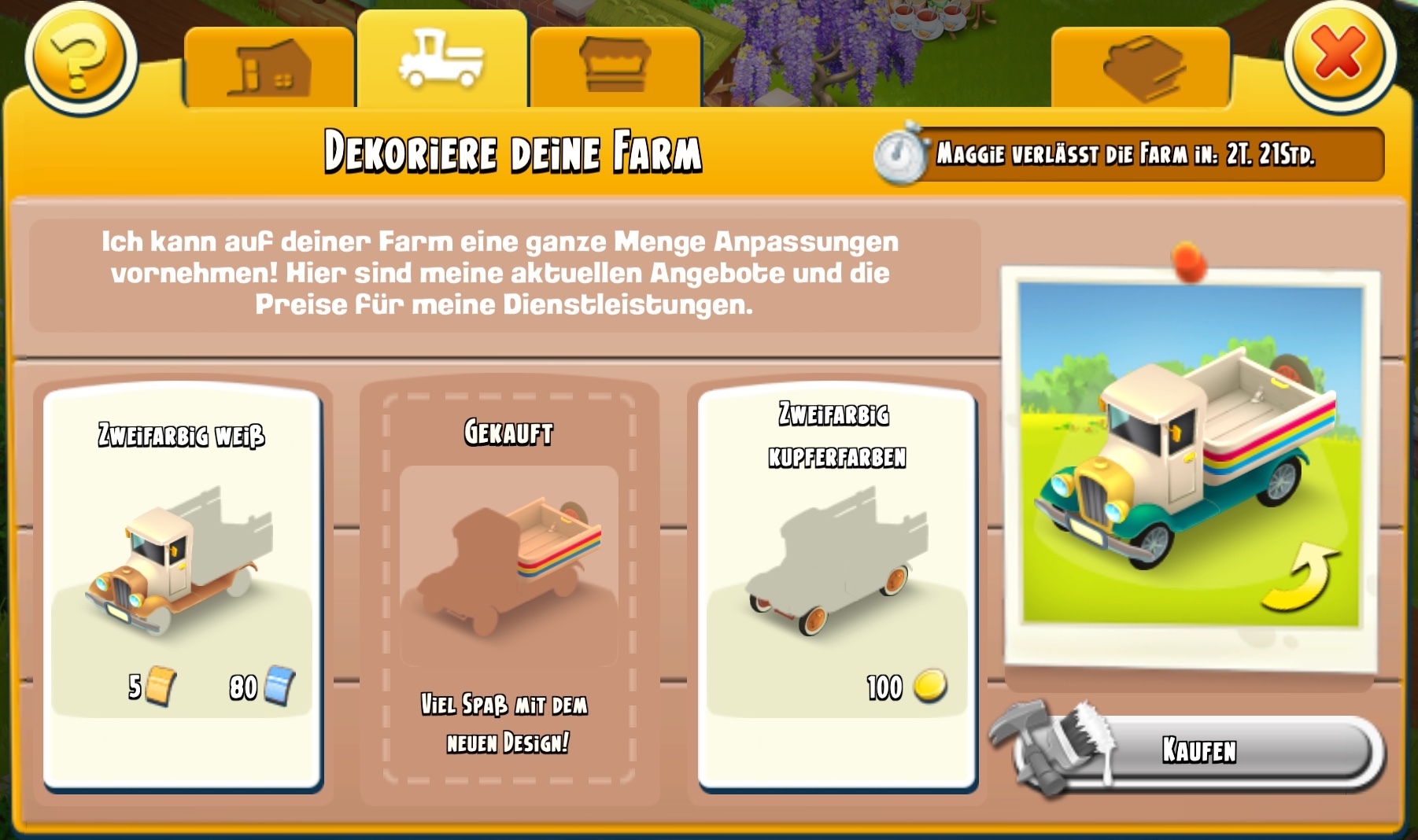 Habe ich gemacht, aber es hat sich im Fall des Lkw Führerhauses nichts verändert...Kauf nur gegen 5 goldene und 80 blaue Gutscheine möglich :nixweiss2: