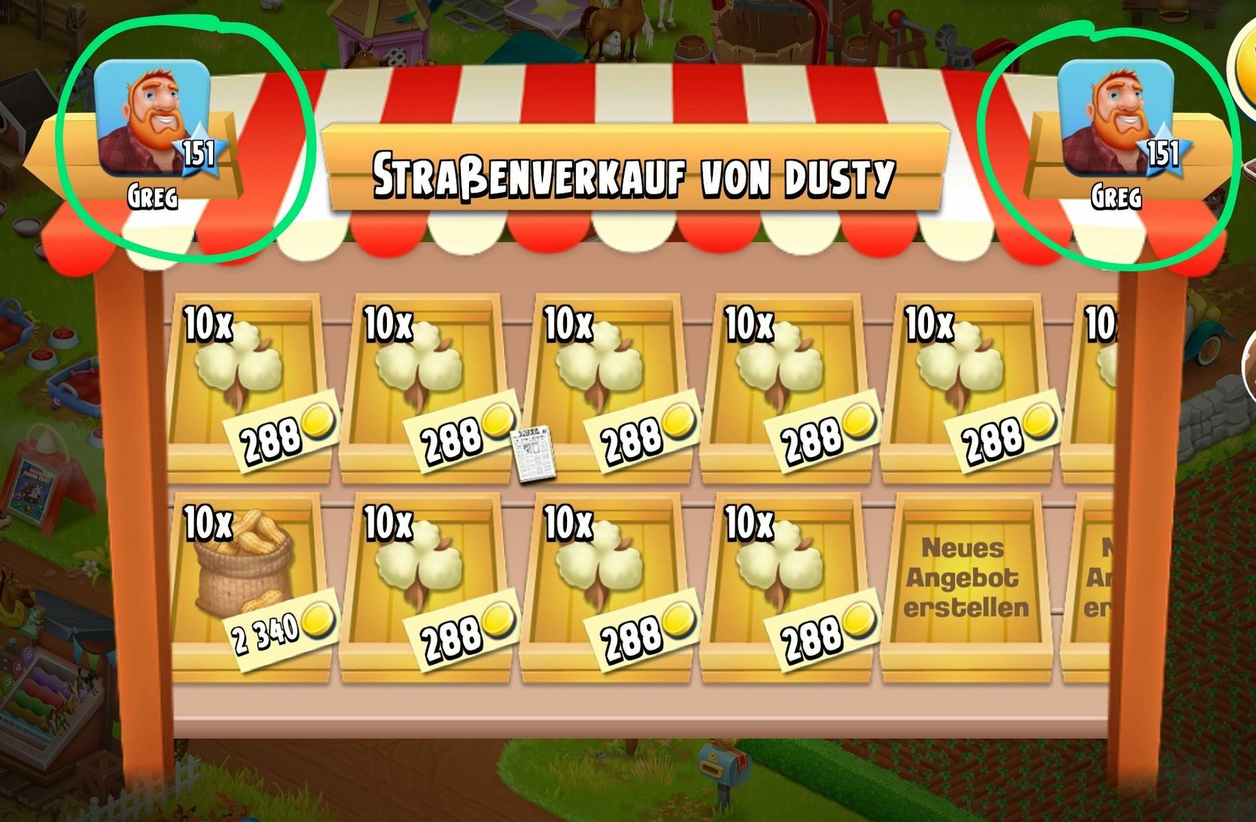 Zweimal Greg, wie beim ersten Mal. Komme dann nur zu Greg, nicht aber zu den anderen Farmen. Wenn ich den Shop verlasse und wieder reingehe, sehe ich die aktuelle Aufstellung mit anderen Farmnamen.