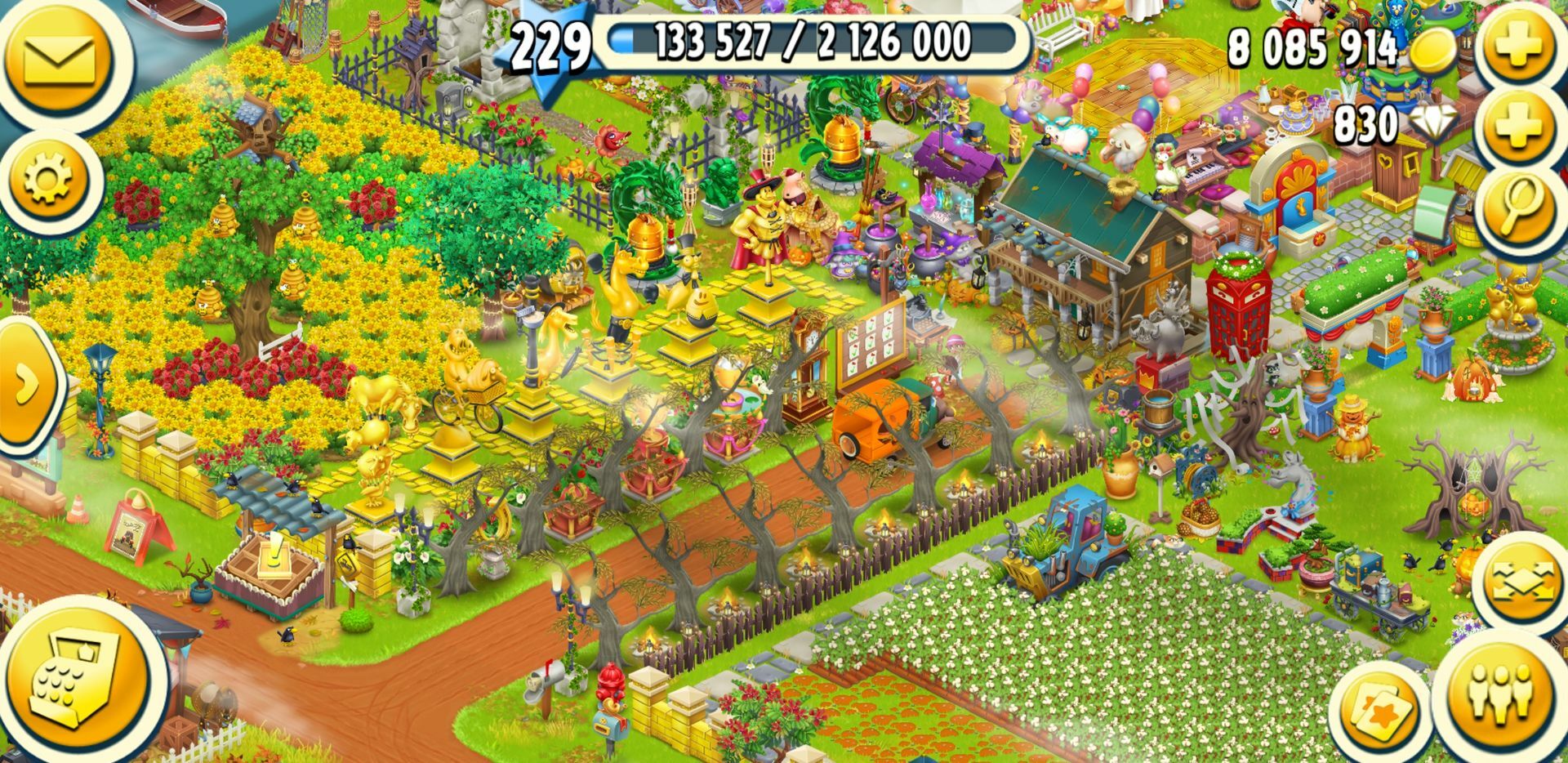 Meine Zweitfarm hatte ich ganzjährig im Halloween-Look und nannte sie in Anlehnung an einen Gruselfilm-Klassiker "Landhaus der toten Seelen". Ich habe sie aber kürzlich aufgegeben. Tat zwar ein bisschen weh, hatte Level 110. Aber irgendwie brauchte ich sie nicht mehr und es wurde mir auch ein langsam zu viel HayDay. Ich muss nicht mehr jedes LKW-Event mitmachen oder laufend Stadtbesucher bedienen.