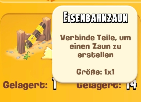 Das übliche Ärgernis. Viele Spieler haben x-verschiedene Zäune, aber meist nur 1 oder max 2 davon. Was soll man damit? Kann SC behalten. Der Eisenbahnzaun ist nett, aber ich habe - glaube ich - Monate warten müssen, bis ich einen 2. oder 3. Zaun ergattern konnte. Nicht der Rede wert. Das ist alles "Driss".... ![]()