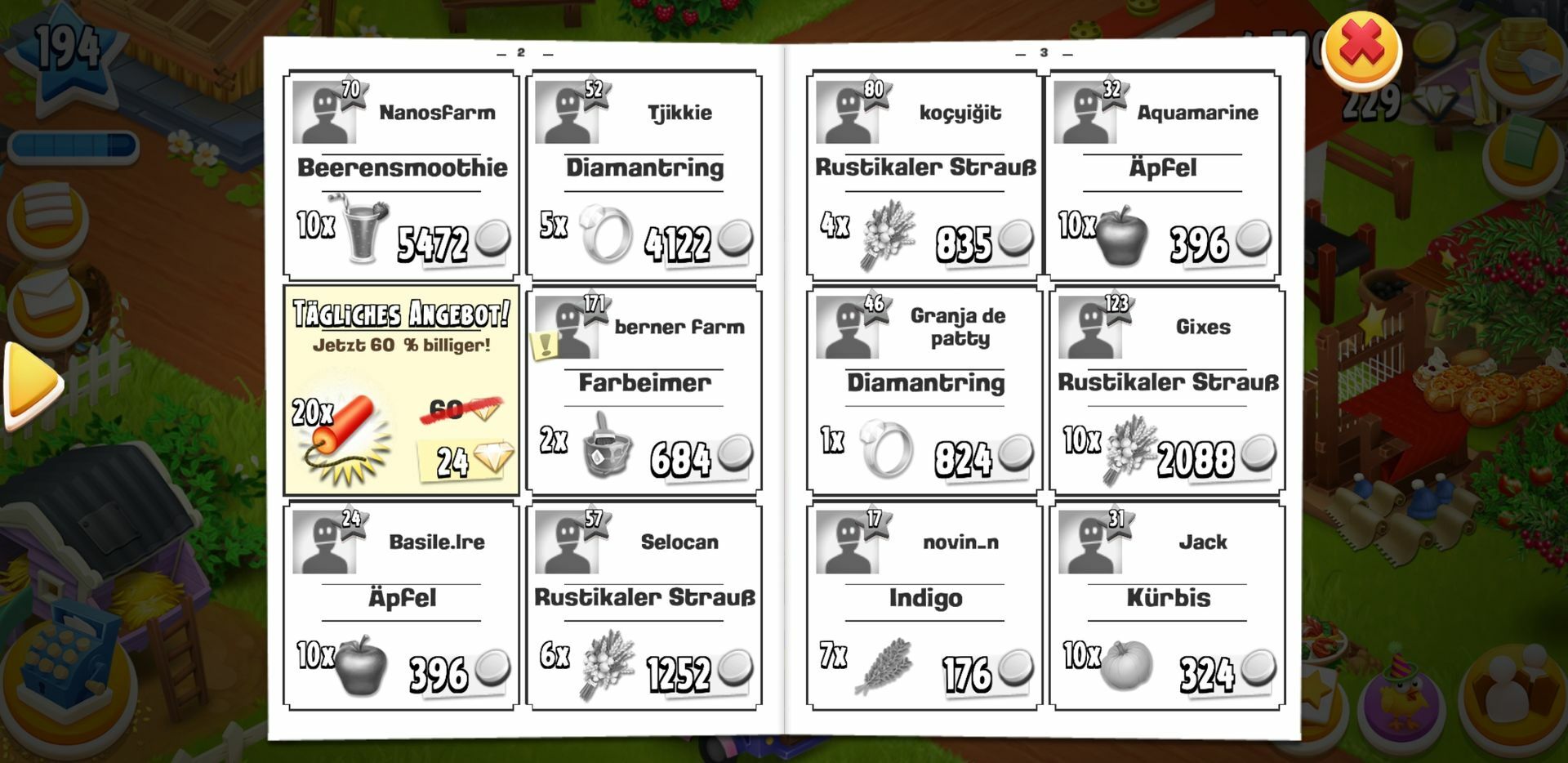 Und das Layout ist wieder geĂ€ndert; zumindest kann man nun wieder „beobachtete Farmen“ (blau) von „Freunden“ (gelb) unterscheiden.