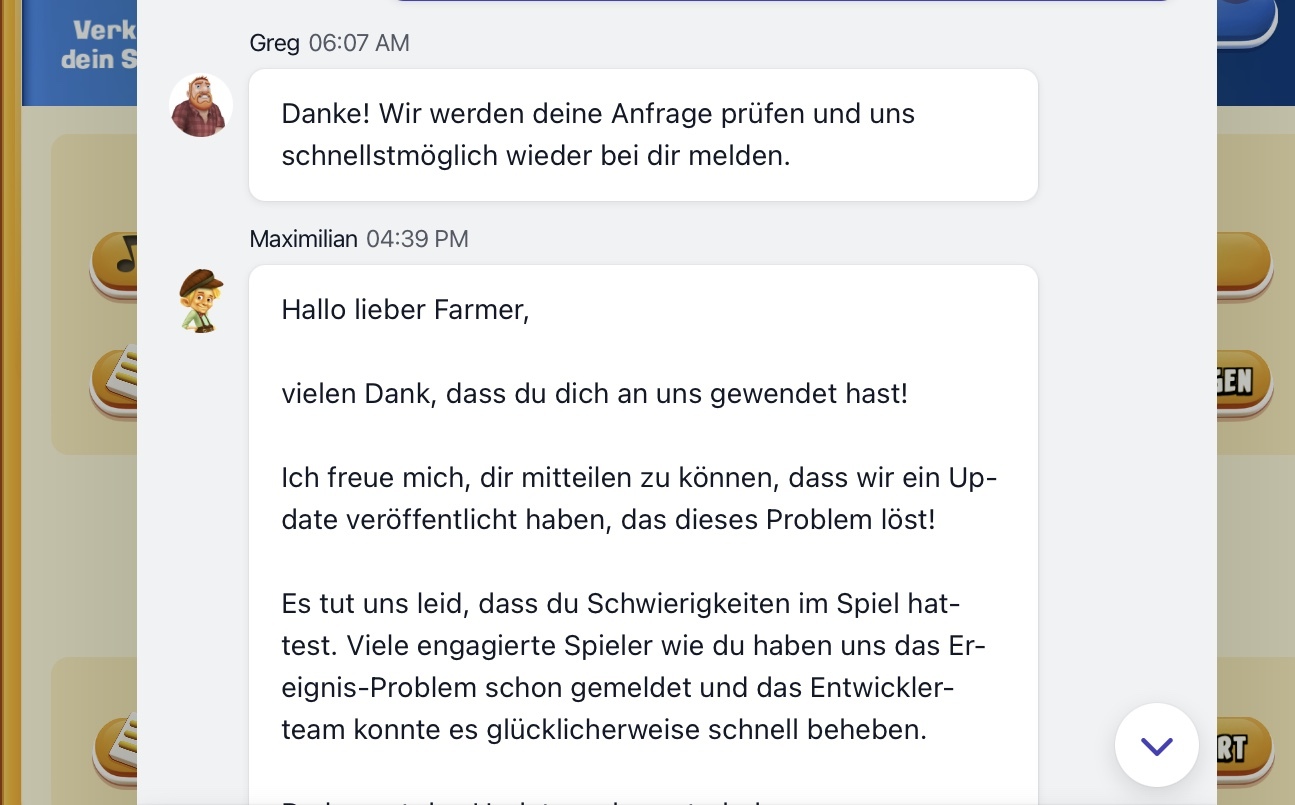 Wie lange dauert es denn, bis hayday auf Anfragen antworten tut? HAB im Spiel eine Anfrage geschickt. Bis jetzt keine Antwort erhalten.