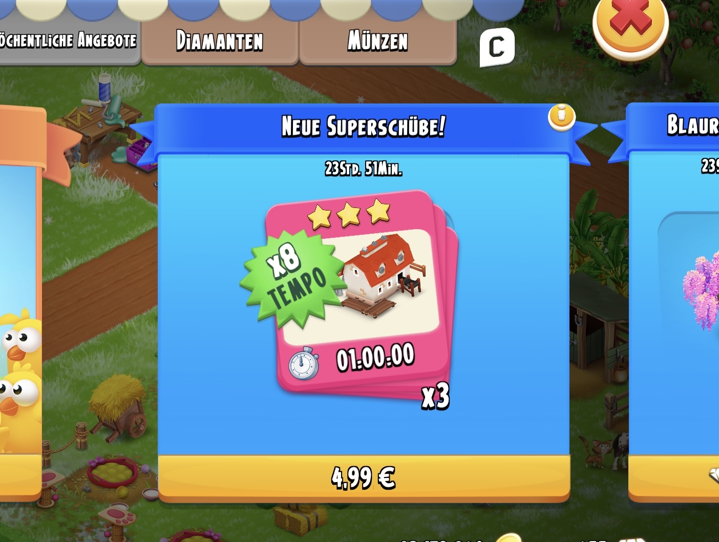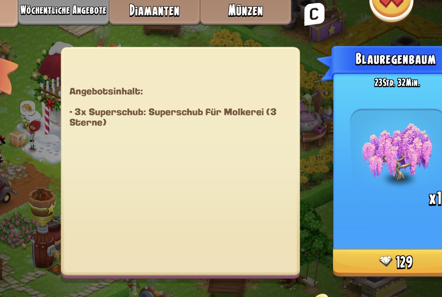 #5 poweroma ich habe gerade deinen Post gelesen, und auch eine Schübepaket gekauft, 2x 5 Sterne, 5x 3 Sterne, für Echtgeld, es scheint aber nicht nur Geld sondern auch Glück nötig zu sein...... bekam keinen Superschub, nur die üblichen( Rose und Ernest, Feldfrüchte, Maschinen, wie gehabt)