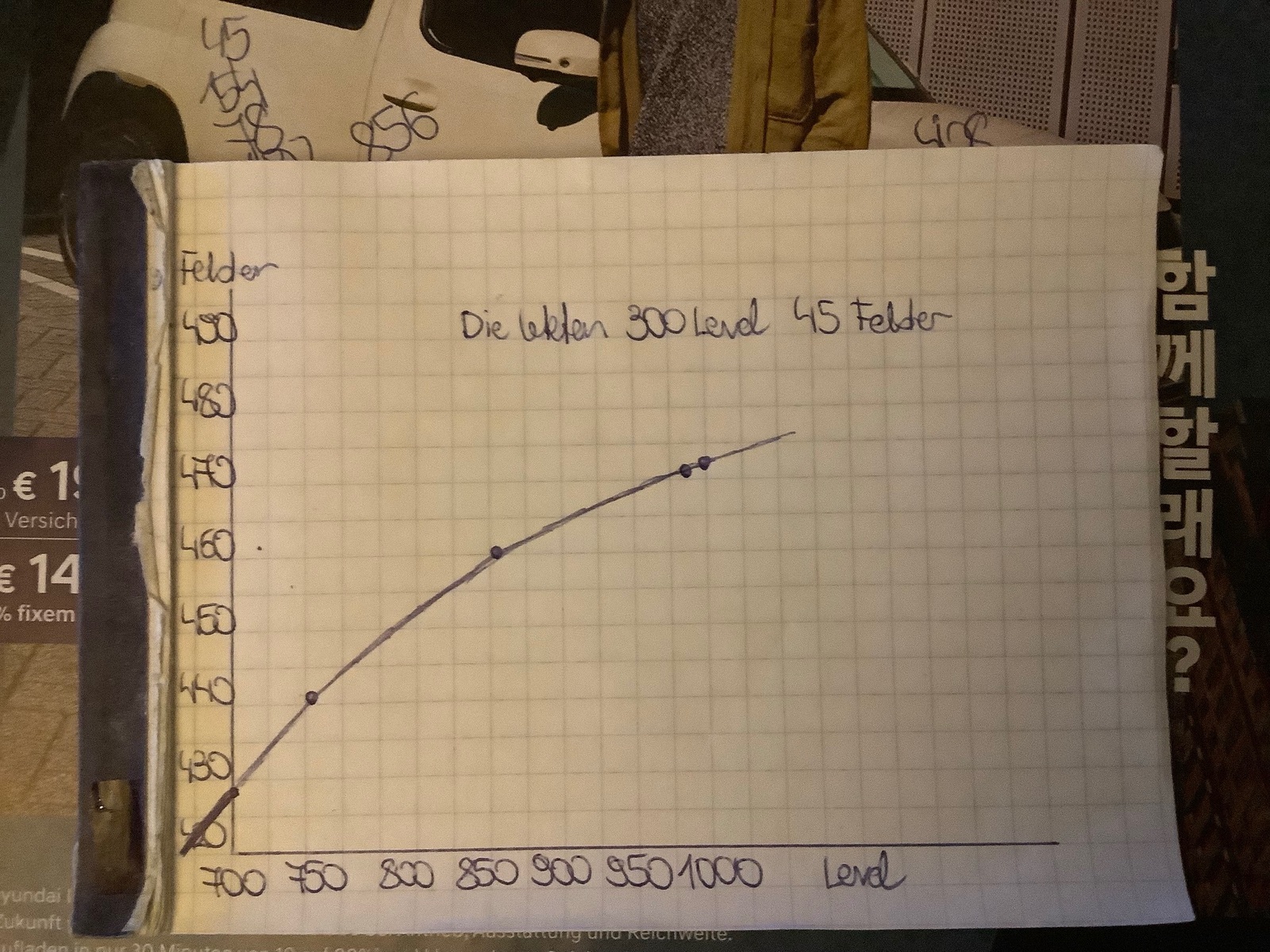 So kann man es sich besser vorstellen. Bis Level 700 liniear. Dann degressiv.
