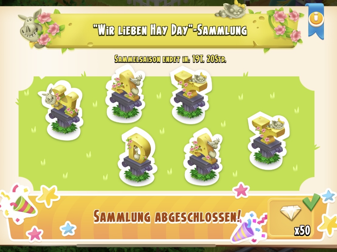 Bei mir ist die Sammlung freigeschaltet, aber die Buchstaben nicht im Lager bekommen.